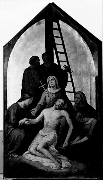 scène biblique (Déploration : Vierge, sainte Madeleine, Saint Nicodème, saint Joseph d'Arimathie, sainte, Christ mort)
