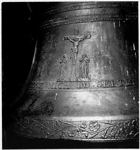 figures bibliques (Christ en croix : saint Jean, Vierge)£figure (Vierge à l'Enfant)£figure (saint Apollinaire)£ornementation (frise : fleur, tête : femme)
