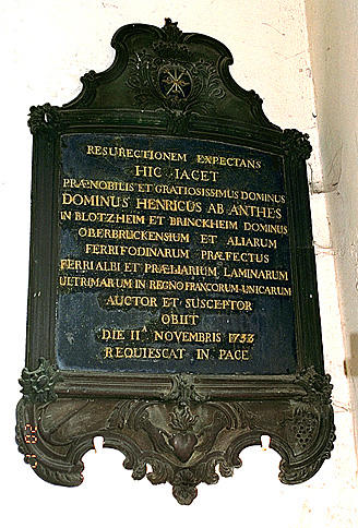 plaque funéraire, de Henri d'Anthès, seigneur de Blotzheim, de Brinckheim et d'Oberbruck