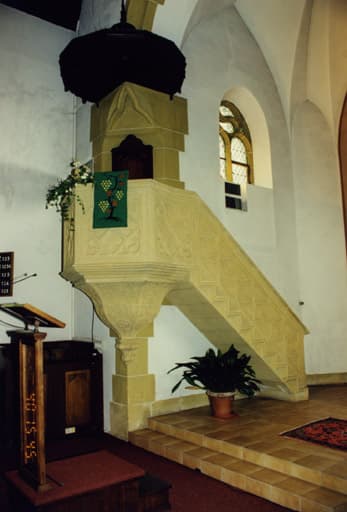autel protestant ; chaire pastorale ; fonts baptismaux protestants