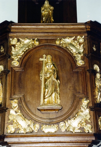La structure de la chaire est simple. Les statuettes des trois saints forment un ensemble, de même que la Religion, le Christ enseignant et le Bon pasteur. Le décor est formé d'éléments rapportés.