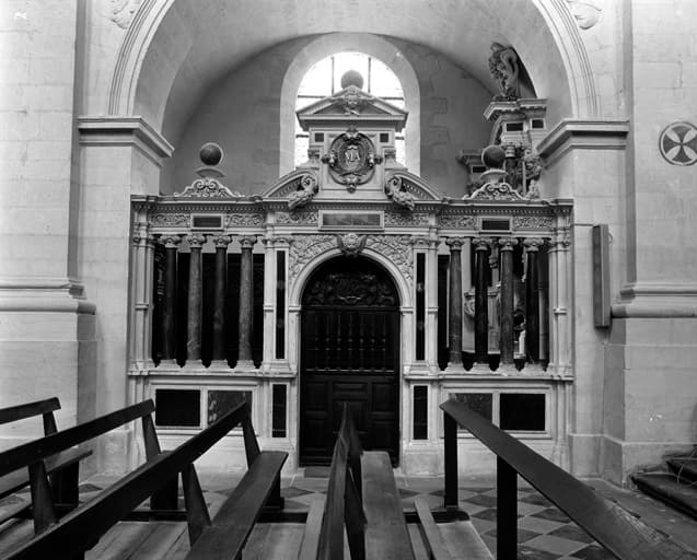 Dans l'église, à l'entrée des chapelles Saint-Ignace, Saint-François Xavier, Saint-Joseph et Notre-Dame.