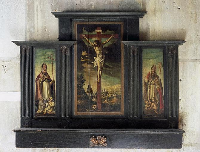 POP | Plateforme ouverte du patrimoinetriptyque : le Christ en croix, saint Augustin et saint Nicolas