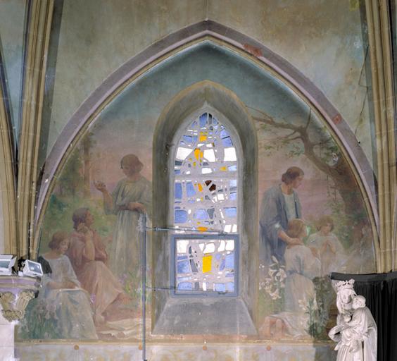Ainsi qu'en témoignent les trois signatures, cet ensemble a été peint par Paul Pascal en 1916 (mur du fond) et 1917 (murs latéraux).