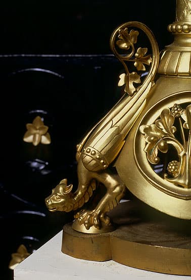 bronze : fonte, doré, ajouré, décor rapporté, moulé ; laiton ; verre