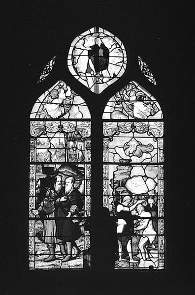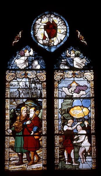 verrière figurée : les Pélerins d'Emmaus, le Baptême du Christ (baie 2)