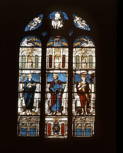 POP | Plateforme ouverte du patrimoineverrière à personnages : saint Benoît, saint Pierre, saint Jean-Baptiste (baie 3)