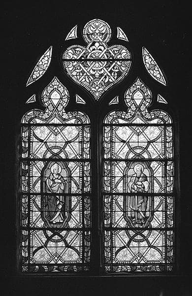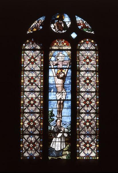 ensemble de quatre verrières : verrières décoratives et à personnages (saint Paul et un saint évêque, Christ en Croix)