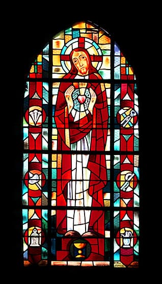 ensemble de 5 verrières : Sacré-Coeur, Baptême de Clovis, translation des reliques de Sainte Honorine, saint Maclou fonde Saint-Malo, sainte Honorine délivre les prisonniers