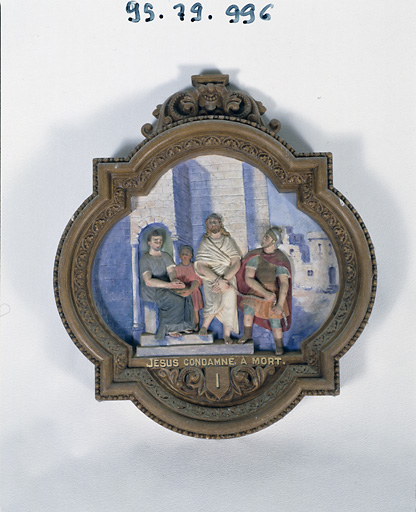 Quatorze stations en plâtre creux polychrome, forme quadrilobée