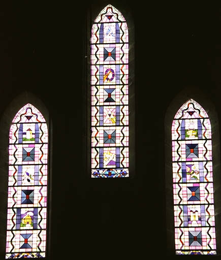 verre : verre antique, polychrome, grisaille sur verre ; plomb (réseau)