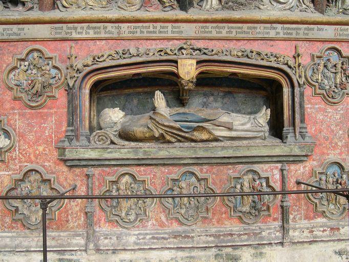 Le tombeau, en calcaire, occupe la partie inférieur du mur de la clôture du choeur, appareillé en pierre de taille. Il est composé d´un enfeu, qui en occupe le centre, de scènes en bas-relief, en médaillons, et d´une peinture murale. L´enfeu contient une dalle funéraire, à gisant en haut-relief. Plafond à deux petites voûtes d´ogive à clef pendante.Comme le mur, dans lequel s´inscrit l´enfeu, l´intérieur de la niche est orné de peintures murales.