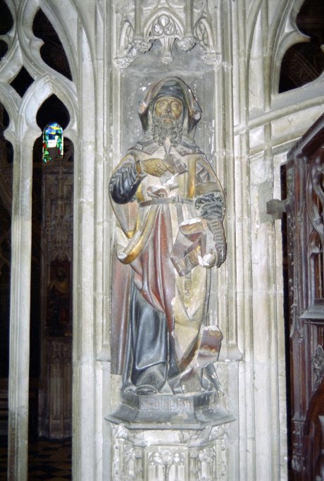 Cette sculpture appartient à l'ensemble sculpté du choeur d'Albi réalisé entre 1474 et 1485. Elle a été détériorée avant la fin du 19e siècle car son état de dégradation est déjà visible sur les clichés photographiques de Louis Aillaud réalisés en 1882. L'oeuvre ne semble pas avoir subi de dommages ni de restaurations depuis.
