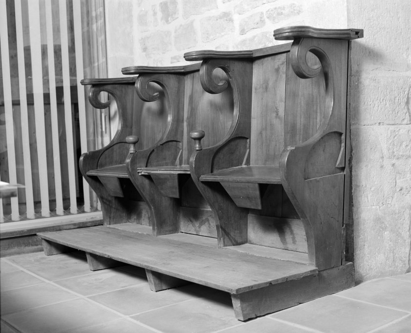 Ensemble de 3 stalles exécutées entre 1666 et 1695, faisant partie des 24 (?) stalles détruites du choeur du chapitre des génovéfains, dans l'ancienne église paroissiale de Saint-Antonin-Noble-Val détruite.