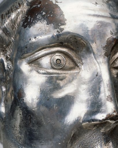 Argenture écaillée sur le front et la tempe gauche. Partie métallique nettoyée par Stéphane Crevat en 2001.