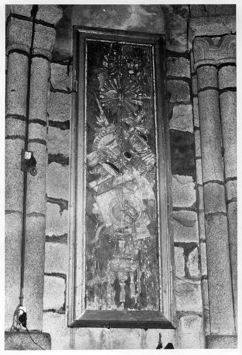 Ces deux panneaux sont les éléments subsistants d'un retable 17e siècle qui occupait probablement le choeur de l'église. Les autres parties du retable ont été enlevées à une époque inconnue.