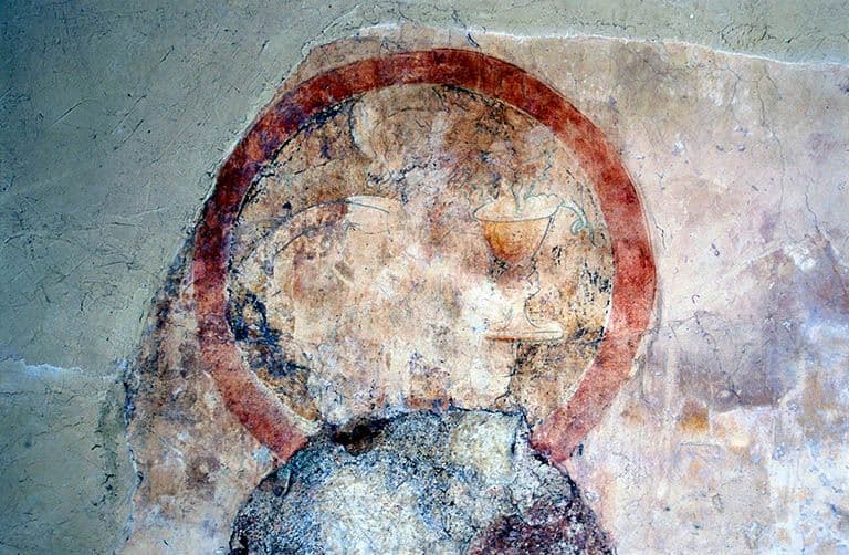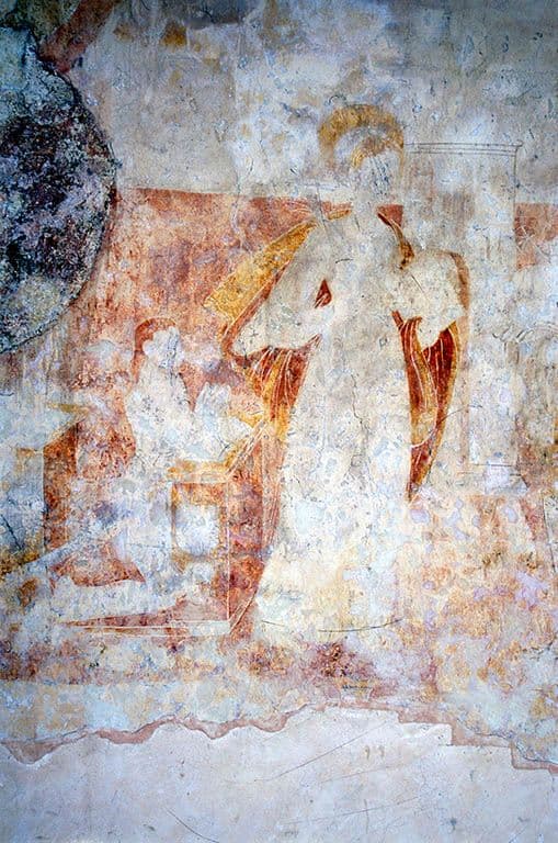 peinture monumentale : saint Jean-Baptiste, sainte Barbe et donateurs