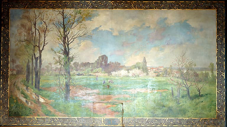 POP | Plateforme ouverte du patrimoine7 peintures monumentales (toiles marouflées) : le semeur, les travaux des champs et les fiançailles, la mairie de Thiais et l'avenue d'Ormesson, la famille, l'église Saint-Leu Saint-Gilles, vue de Thiais, le repos du faucheur
