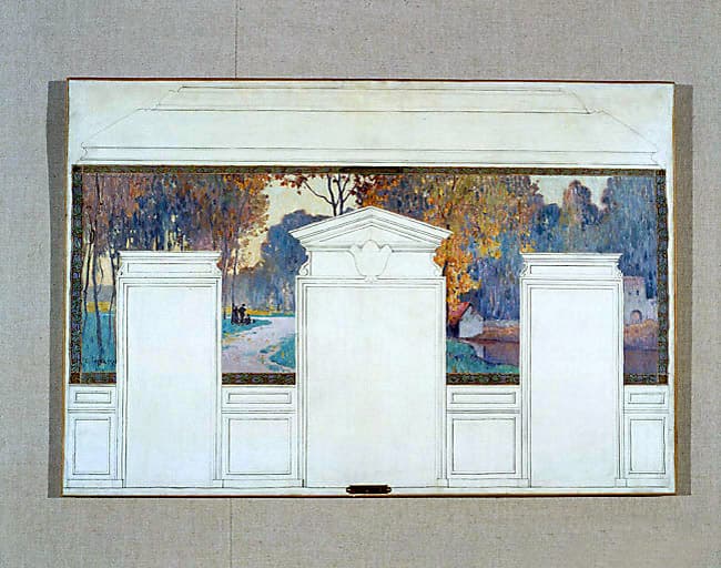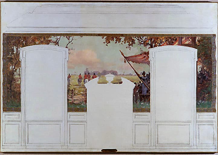 2 peintures monumentales (décor d'architecture, décor intérieur) : place de Fresnes (une), carrières (les), labour au déclin du jour (le), Fresnes, sur le plateau, batteurs de blé (les), place de Fresnes (une), carrières (les), labour au déclin du jour