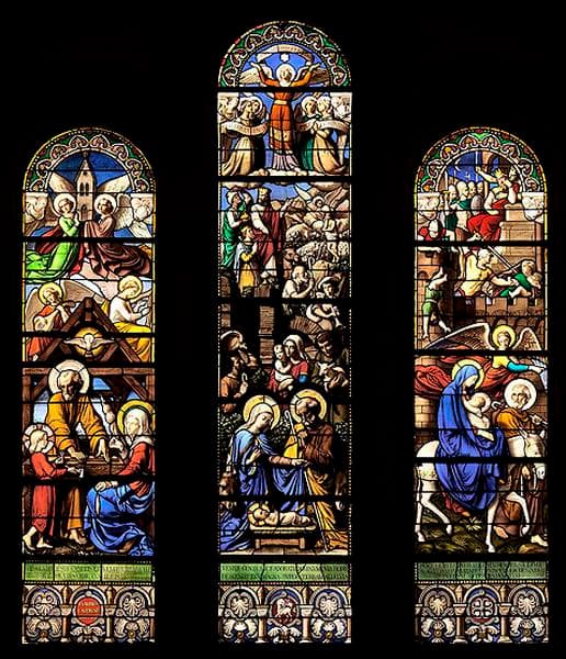 POP | Plateforme ouverte du patrimoine7 verrières historiées et figurées : Sainte famille, Nativité, Fuite en Egypte, prophètes et rois (baies 0, 1, 3, 5, 2, 4 et 6)