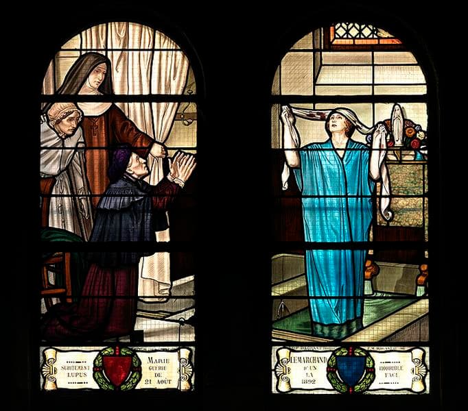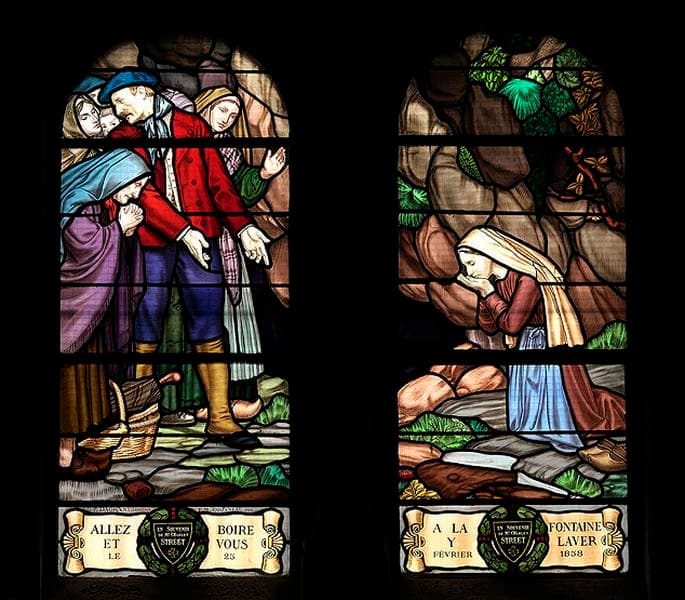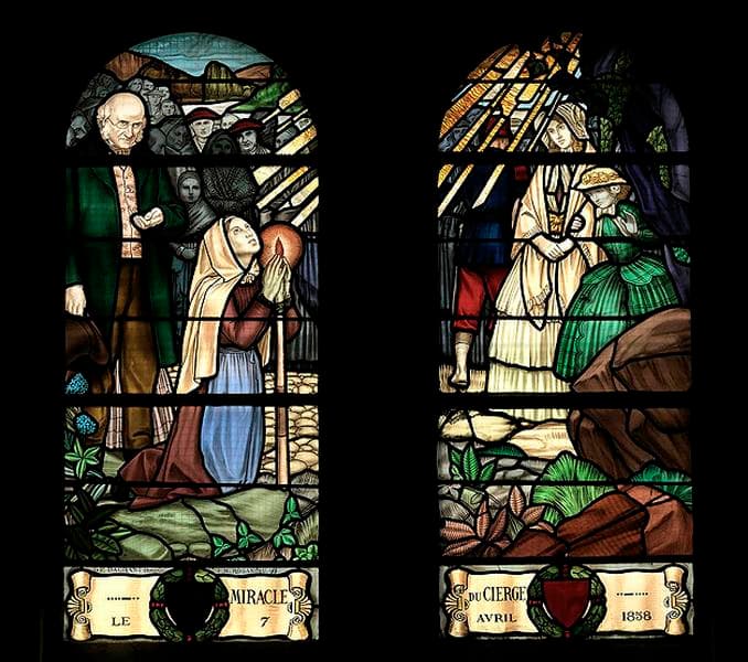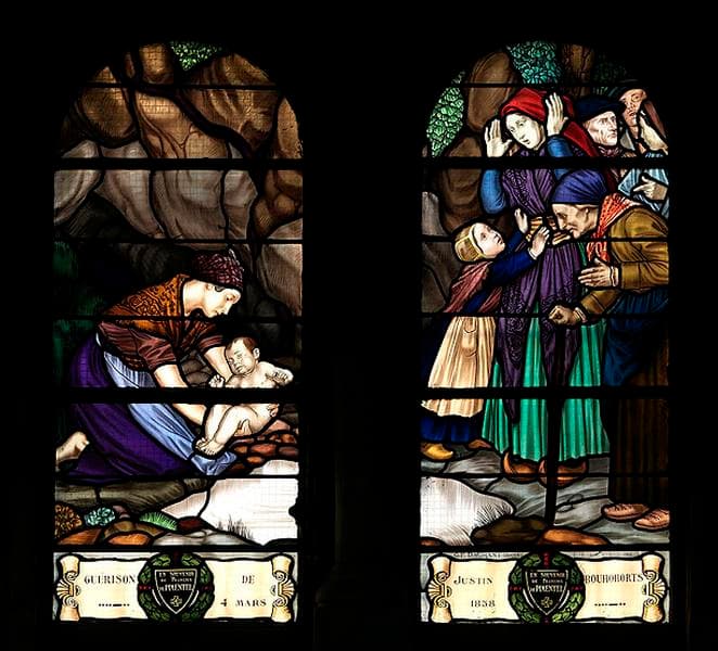 POP | Plateforme ouverte du patrimoine11 verrières historiées : apparitions, guérisons, enfance de Bernadette Soubirous, sainte Thérèse de Lisieux, Couronnement du roi Charles VII