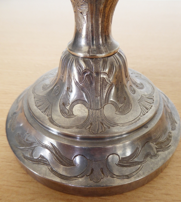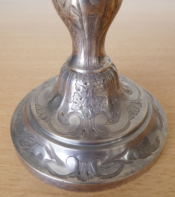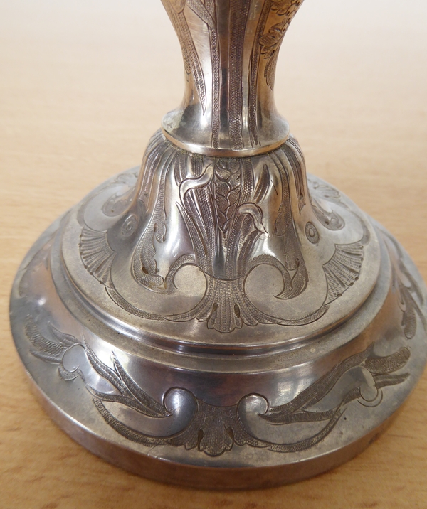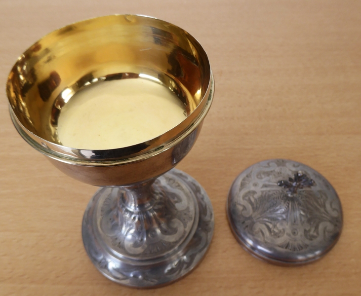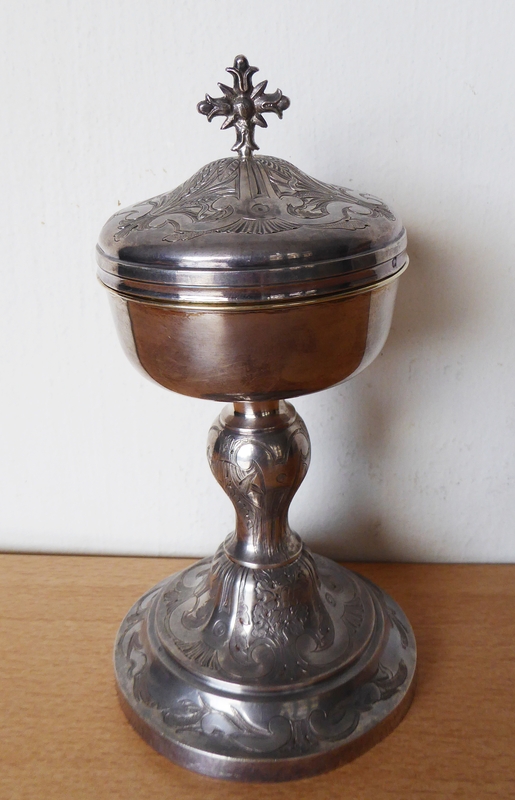 Ciboire exécuté entre 1844 et 1863 par l'orfèvre parisien Charles-Eugène Trioullier, dont le poinçon a été insculpé le 31 janvier 1844 et biffé le 10 octobre 1863.