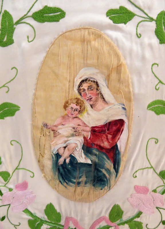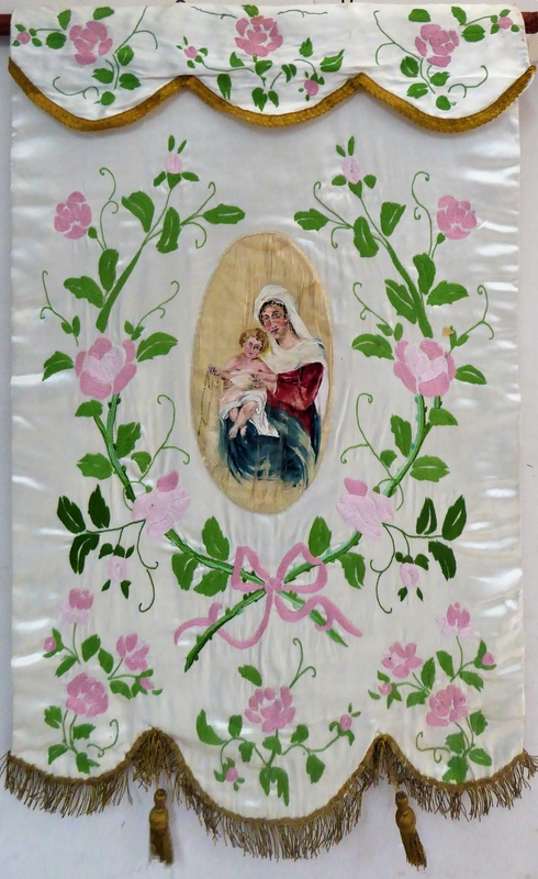 Bannière de procession datable du 20e siècle. Les médaillons centraux semblent plus anciens et peuvent être des remplois.
