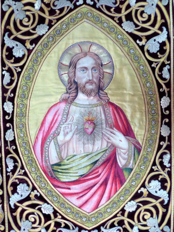 bannière de procession : Paroisse du Sacré-Cœur de Balata, aux armes de Monseigneur Lequien