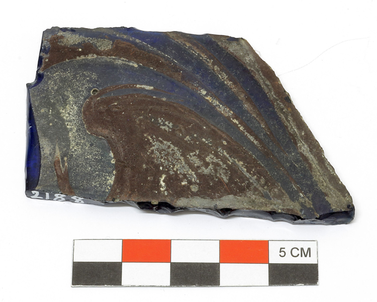 POP | Plateforme ouverte du patrimoineFragment de vitrail, verre bleu, motifs végétaux