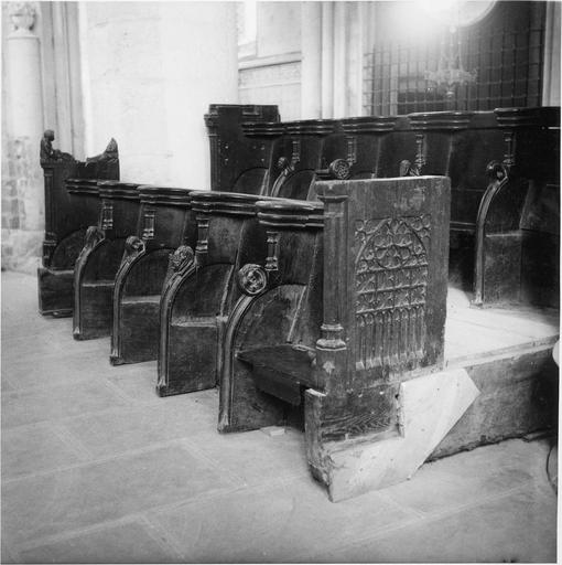 Les stalles sont composées de deux séries de 10 places chacune. Des figurines sont représentées sur les accoudoirs. Les dossiers ont disparu.