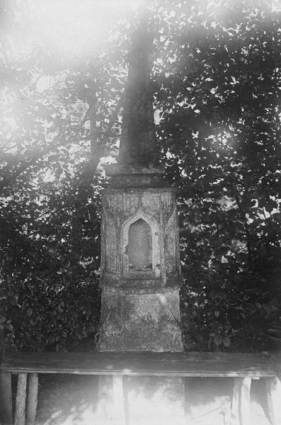 15/06/2016 : en trois parties (socle, réserve et pincale), porte et ange portant écusson non vus.