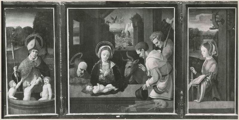Triptyque : Adoration des Bergers ; Saint Nicolas ; Sainte Catherine ; Annonciation