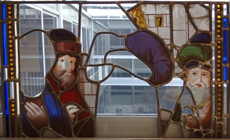 Verrière à personnages : Jésus parmi les docteurs de la loi ensemble de 17 verrières Episodes de la vie de la Vierge et du Christ