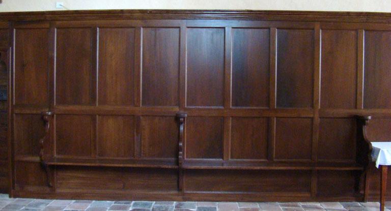 Dans l'inventaire des biens dépendant de la fabrique paroissiale de Chaveyriat réalisé le 3 mars 1906, il est mentionné : n°3 / stalles en bois blanc, à droite et à gauche scellées (AD cote 8V26).