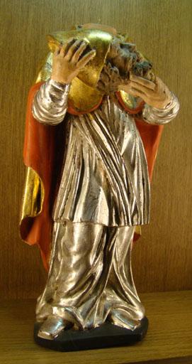 On ne connaît pas la provenance de cette petite statue qui ornait peut-être un retable avec d'autres saints... L'église est placée sous le vocable de Saint-Jean-Baptiste, dont une belle représentation en pierre du 16e siècle décore la niche sous la galonnière.