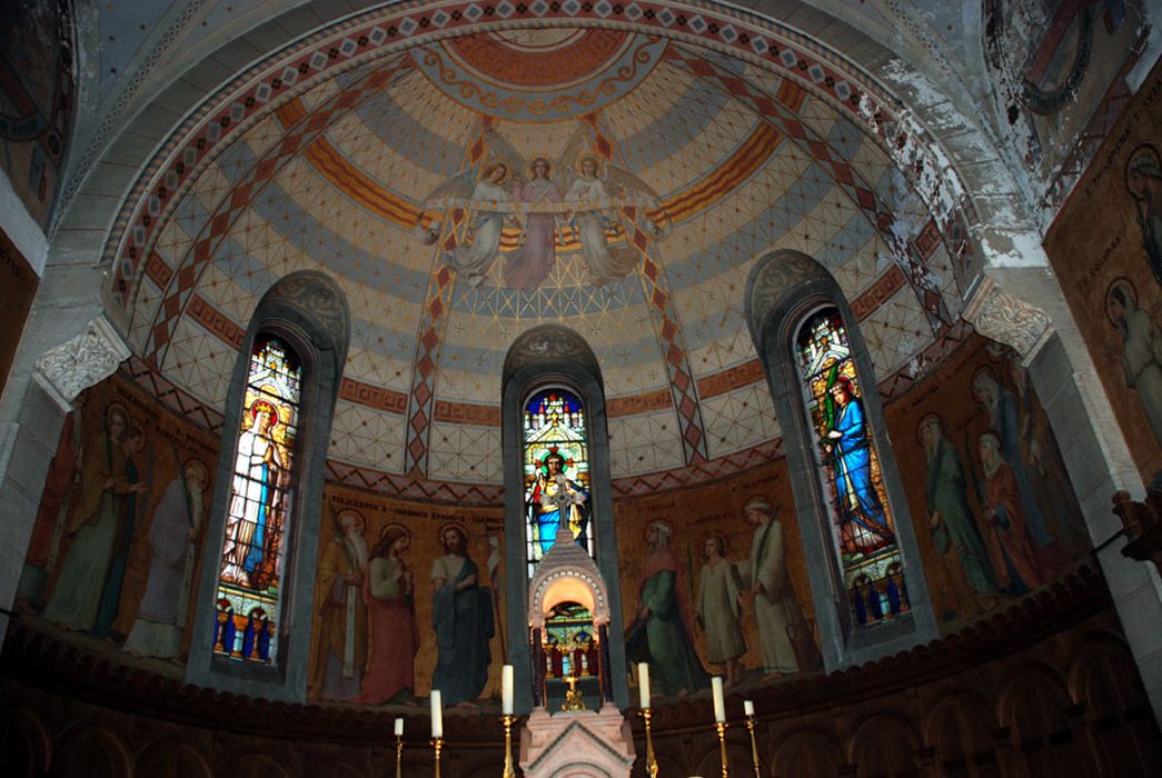 inscription (sur la voûte) : GLORIA IN EXCELSIS DEO ; inscription (mur sud, incomplète) : NATIONES DOMINABUNTUR POPULUS ; inscription (mur nord, incomplète) : SEQUUNTUR AGNUM QUOCUMQUE IERIT VIRGINES ENIM SUNT