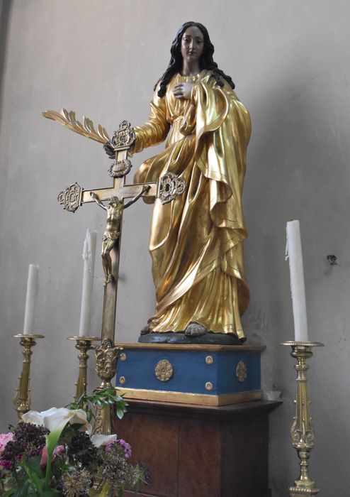 Ronde-bosse en bois polychrome et doré ; la statue repose sur une terrasse en sapin.
