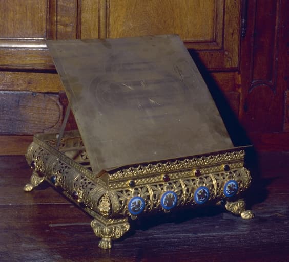 Pupitre d'autel avec 4 médaillons en émail ; métal doré, pierreries, émail.