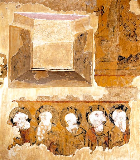 Peinture monumentale : Annonciation ; Apôtres ; Saint Fabien ; Saint Sébastien