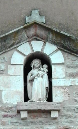 dans la niche au-dessus du porche de la façade