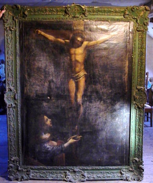 Tableau : Christ en croix avec Marie-Madeleine