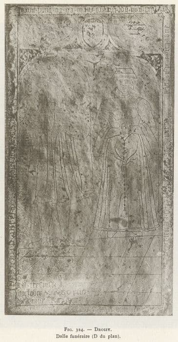 Dalle funéraire à effigies gravées.