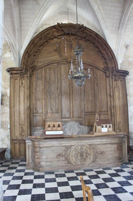 Banc d'oeuvre du 17e siècle orné au dos d'une toile attribuée à Martin Fréminet ou à Martin de Vos, 16e siècle.