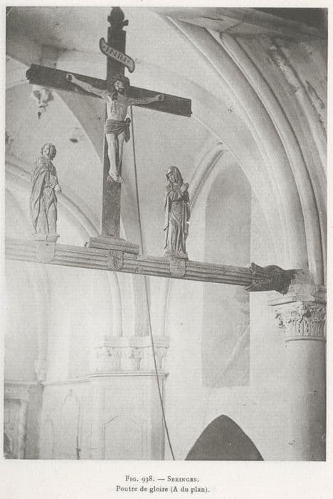 poutre de gloire : Christ en croix entre la Vierge et saint Jean (le)