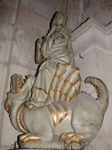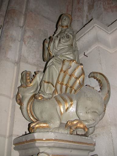 groupe sculpté (statuette) : sainte Marthe et la Tarasque