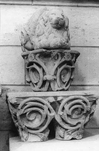 Animal accroupi correspondant à l'ancienne extrèmité d'un gisant d'homme.