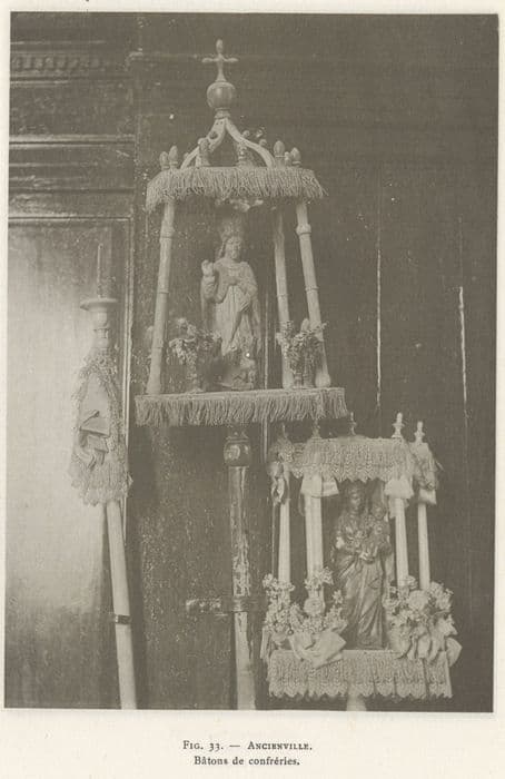 POP | Plateforme ouverte du patrimoineéléments de bâtons de procession avec deux statues (statuettes) : Groupe de la Vierge et Saint Médard