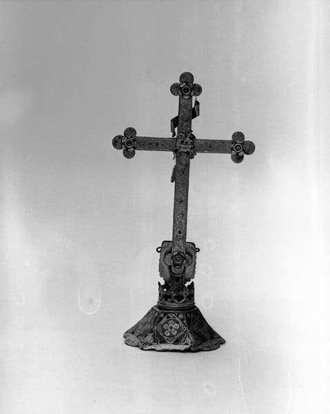 Crucifix reliquaire, en cuivre doré et émaillé, orné au pied de la couronne ducale.