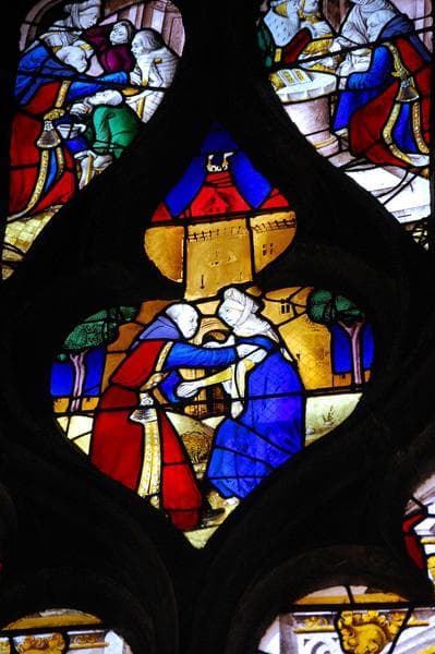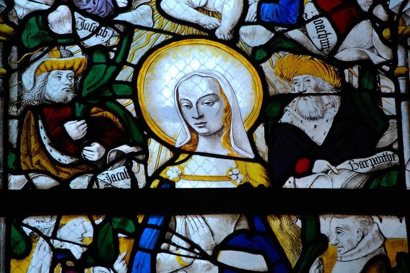 verrière : l'Arbre de Jessé avec scènes de la vie de sainte Anne et de saint Joachim