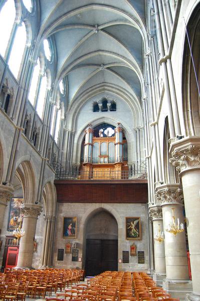 En 1875, l'évêque de Moulins envoie au Ministère de l'Instruction Publique et des Cultes deux devis, un d'Aristide Cavaillé-Coll, l'autre de Joseph Merklin, concernant la construction d'un grand orgue et d'un orgue de choeur. Le grand orgue est commandé en 1878 à Joseph Merklin, l'obligation est faite de s'adresser pour la confection du buffet à l'architecte diocésain M. Millet. L'orgue est inauguré le 10 août 1880. Le projet de construction de l'orgue de choeur est abandonné.